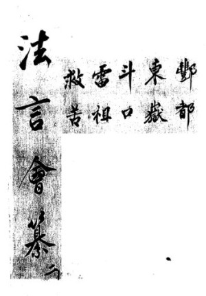 法言会纂(五十卷,十册,民国扶经堂刻本).《法言會纂》是四川"法言壇"道派所常用的一部大型道教科書書合集,由晚清四川地方社會中著名的文人團體"劉門"編印,其中收集整理了很多獨具特色的科儀。內容包括:1開壇、 2請水、 3淨壇、 4行香請水、5祀灶、 6城隍、 7揚幡、 8十王、9酆都、 10東岳(內附祈嗣安床供燭)、 11鬥口、12雷祖、 13救苦、 14啟師、15三元、16謝火、 17文昌、18鬥府、 19步罡、20禮鬥(內附解除目疾)、 21生人移度、 22移煉除魔、23靖怪(內附與冤)、 24九皇、 25玉皇、26太上、 27供齋、 28詔赦、29土皇、30謝土、 31謝陰宅、32開礦、33祈雨、34祈晴、 35瘟醮、 36除蝗、37除蝗預申、38驅蟲、 39開路、 40召亡、41十王轉案、42勸亡、43斷繩、 44餞亡賞夫、44漂燈、46施戒、 47送聖、 48神像開光、49啟文、50申疏式科儀,難得科儀。