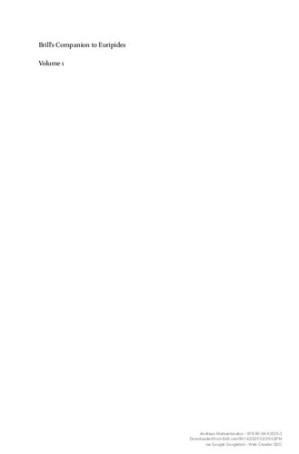 "Brill's Companion to Euripides offers 49 specially commissioned essays from leading international scholars which give critical examinations of the progress and direction of numerous wide-ranging debates about various aspects of Euripidean drama. Each chapter, as well as covering a wide diversity of thematic angles, provides readers with an authoritative and state-of-the-art survey of current thinking and research in a particular subject area. Recent advances in scholarship have raised new questions about Euripides and Attic drama, and have overturned some long-standing assumptions and canons. Besides presenting a comprehensive and authoritative guide to understanding Euripides and his masterworks, this companion provides scholars and students with compelling fresh perspectives upon a broad range of issues in the rapidly evolving field of Euripidean studies. Contributors are: James Barrett, Luigi Battezzato, Joshua Billings, Claude Calame, D.M. Carter, John Davidson, Markus Dubischar, Francis Dunn, P.J. Finglass, Marco Fantuzzi, Helene P. Foley, Moira Fradinger, John Gibert, Justina Gregory, Emma Griffiths, Mary Louise Hart, Daniel I. Iakov, Ioanna Karamanou, Adrian Kelly, Poulheria Kyriakou, Anna A. Lamari, Michael Lloyd, Andreas Markantonatos, Sarah Miles, Sophie Mills, James Morwood, Melissa Mueller, Dana L. Munteanu, Patrick O'Sullivan, Joe P. Poe, Pietro Pucci, Nancy Sorkin Rabinowitz, Rush Rehm, Mark Ringer, Hanna M. Roisman, Elizabeth W. Scharffenberger, Ruth Scodel, Camille Semenzato, Carl Shaw, Niall W. Slater, Mae J. Smethurst, Mary Stieber, Laura Swift, William Blake Tyrrell, Angeliki Tzanetou, Eirene Visvardi, Paul Woodruff, Nancy Worman, and Florence Yoon"-- Proporcionado por el editor.