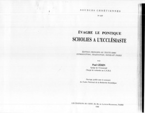 Scholies à l’Ecclésiaste Évagre le Pontique Éditions du Cerf, Sources Chrétiennes 397, 1993