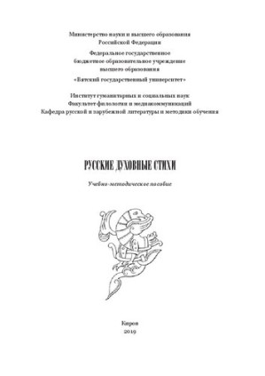 Издание знакомит с историей и поэтикой русских духовных стихов как особого жанра русского фольклора. Пособие может быть использовано при подготовке к практическим занятиям, для написания рефератов, во внеаудиторной работе студентов и учащихся